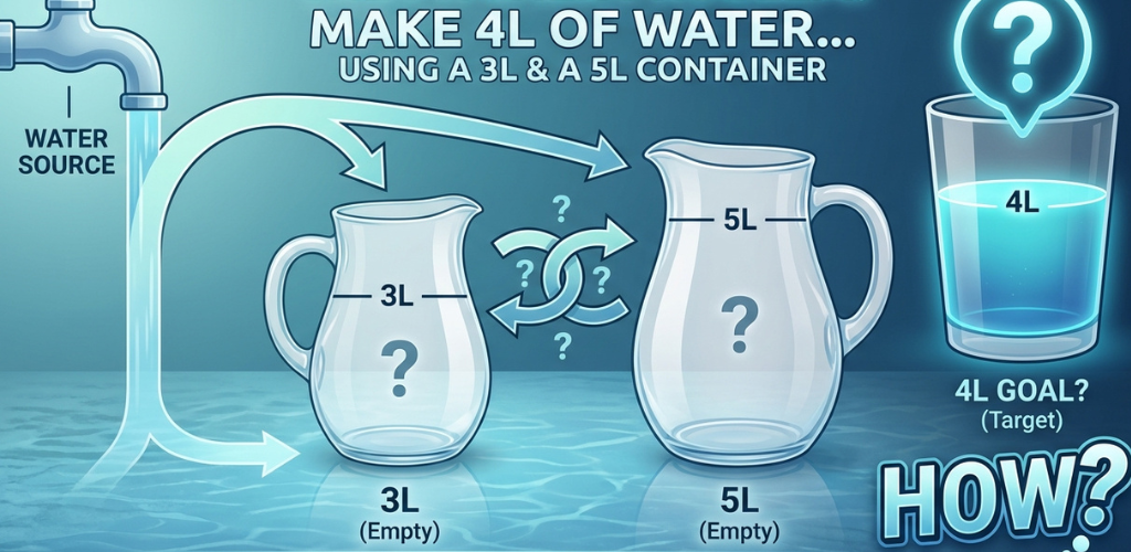 「3Lと5Lの容器を使って4Lの水を作る」という有名な水差し問題をはじめ、100ステージの水差し問題が楽しめる!